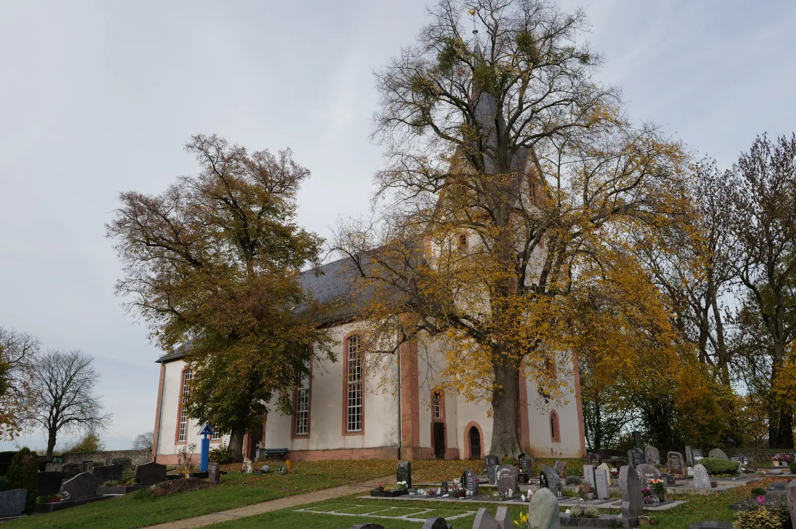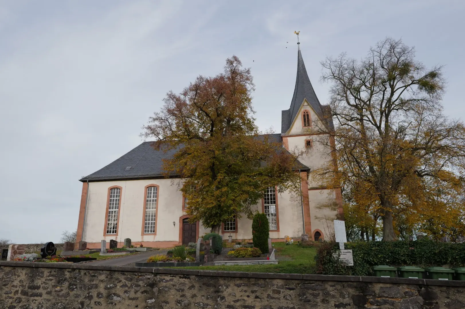 Friedhof des Dorfes. Von Steinheim oder Hungen kommend, beherrscht sie